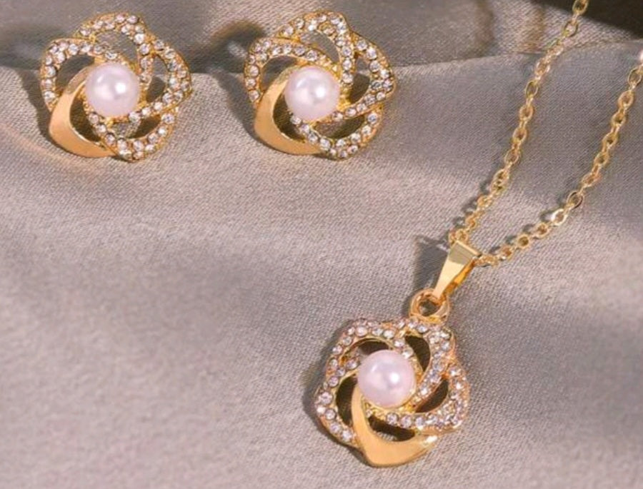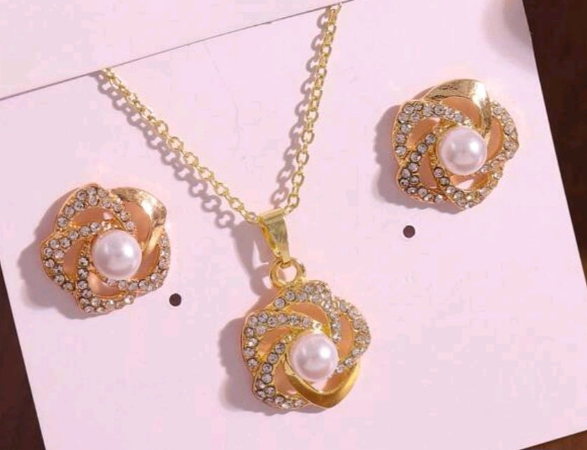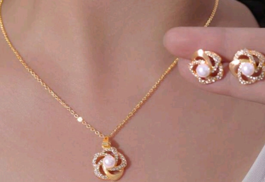 Discover the timeless elegance of our 3 rose gold rose set. This stunning 3pc set features a gold plated necklace and matching earrings, perfect for adding a touch of glamour to any outfit. Crafted with intricate detailing and superior quality, this set is sure to make a statement.