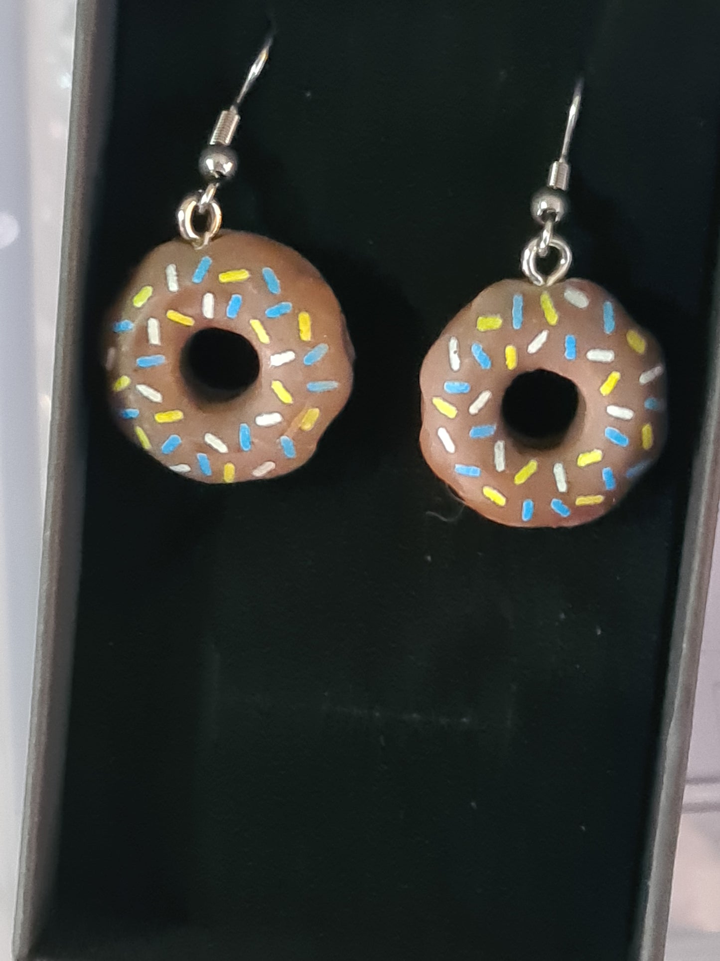 Elevate your earring game with our Dangle Donut earrings. These unique earrings add a playful touch to any outfit, while remaining lightweight and comfortable. Crafted with high-quality materials, these earrings are a must-have for any fashion-forward individual. Upgrade your style with Dangle Donut earrings today.