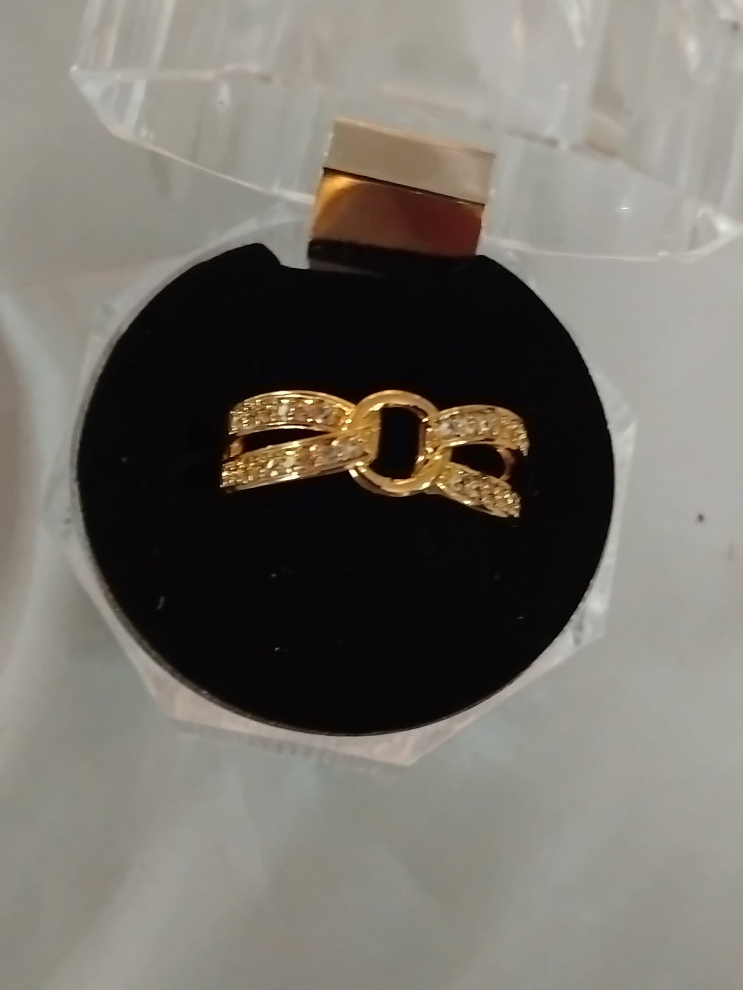 This Loop Knot Ring, plated in 14k gold, features a unique design with looped o links and dazzling diamantes to add a stunning shimmer. Stand out like a princess with this one-of-a-kind accessory.