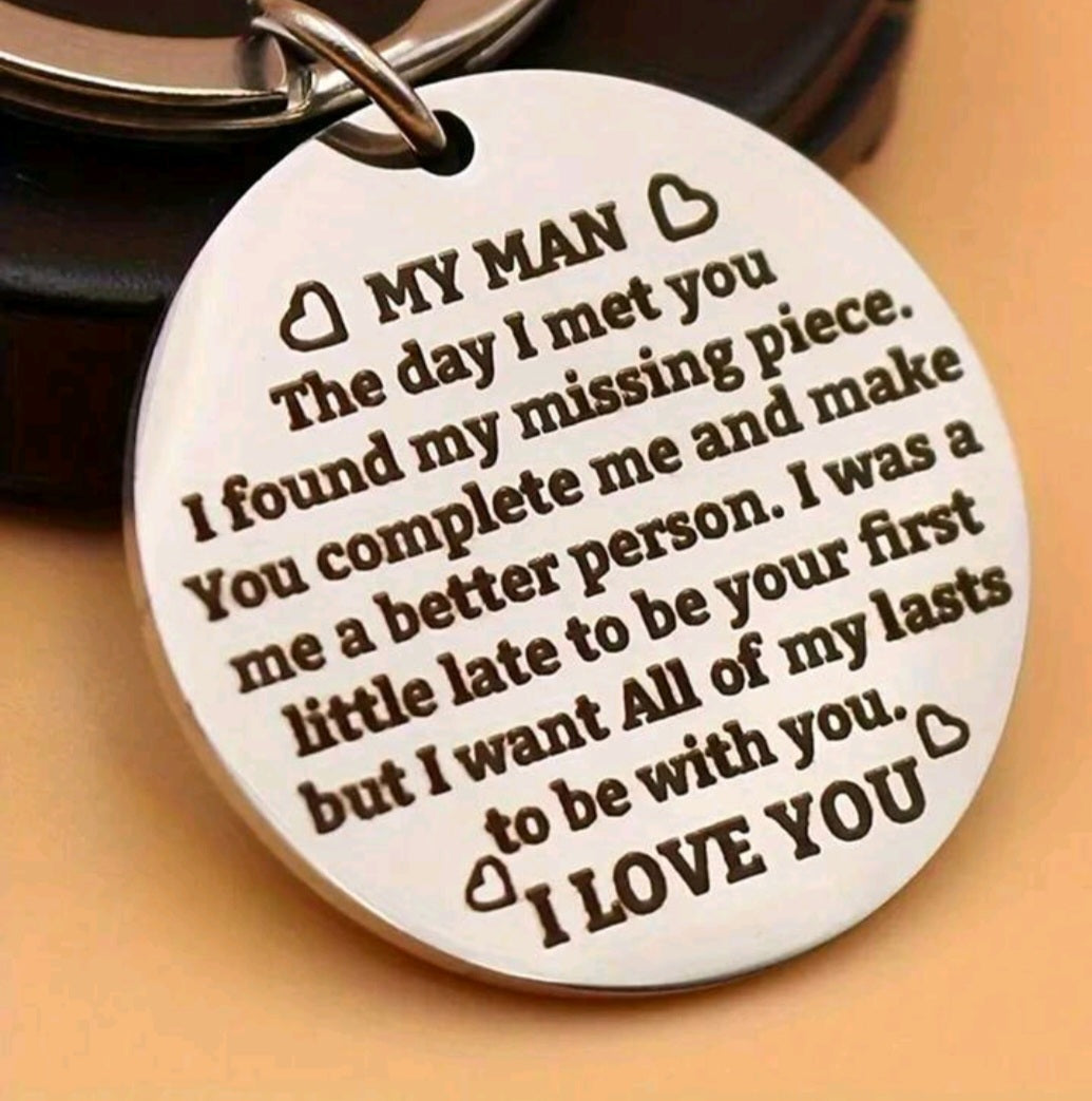 Introducing the My Man Keyring, the perfect way to show your appreciation for the special man in your life. Made with high-quality materials and a clever design, this keyring is both functional and sentimental. A thoughtful gift for any occasion, make your man feel loved every time he reaches for his keys.