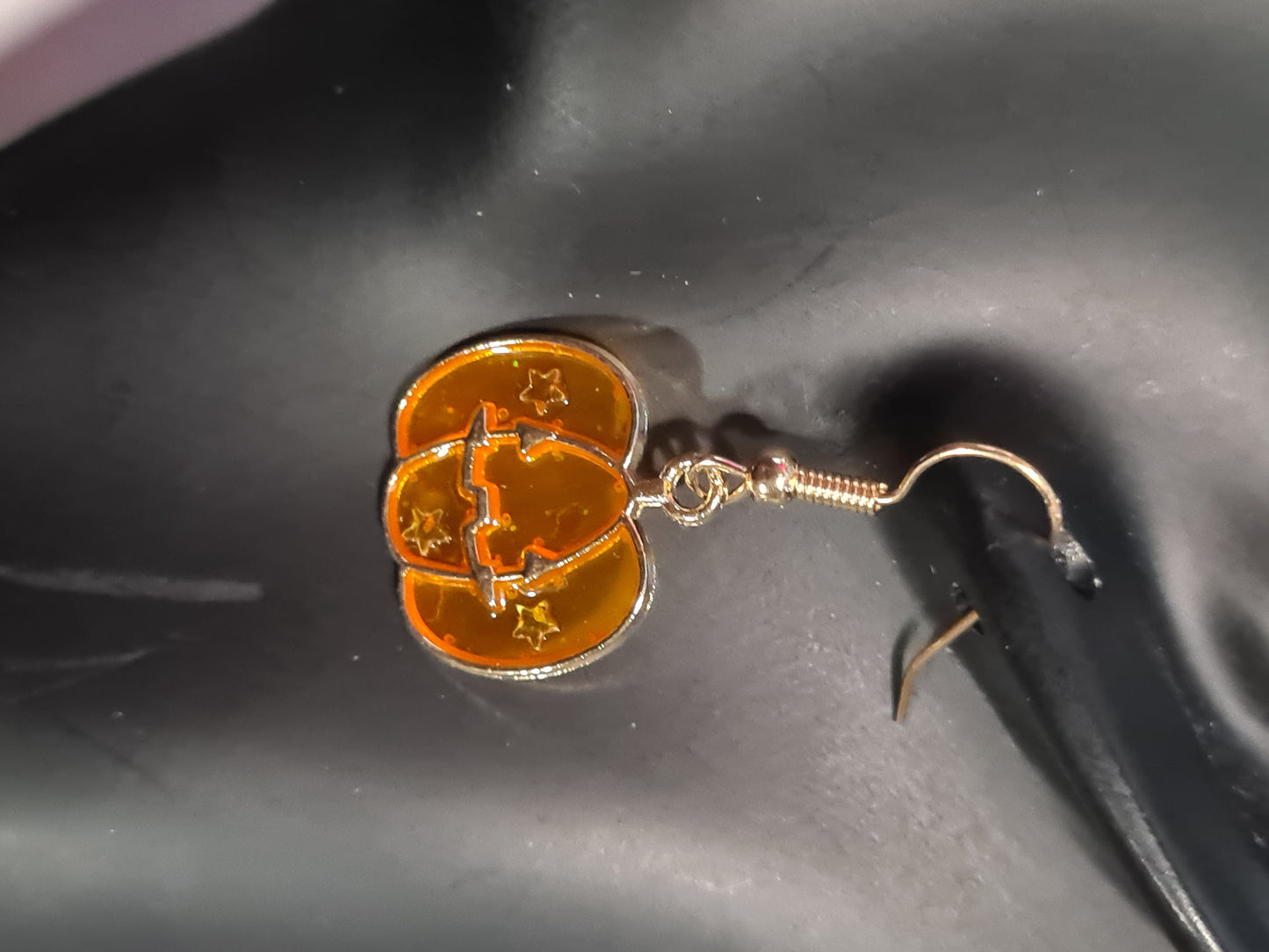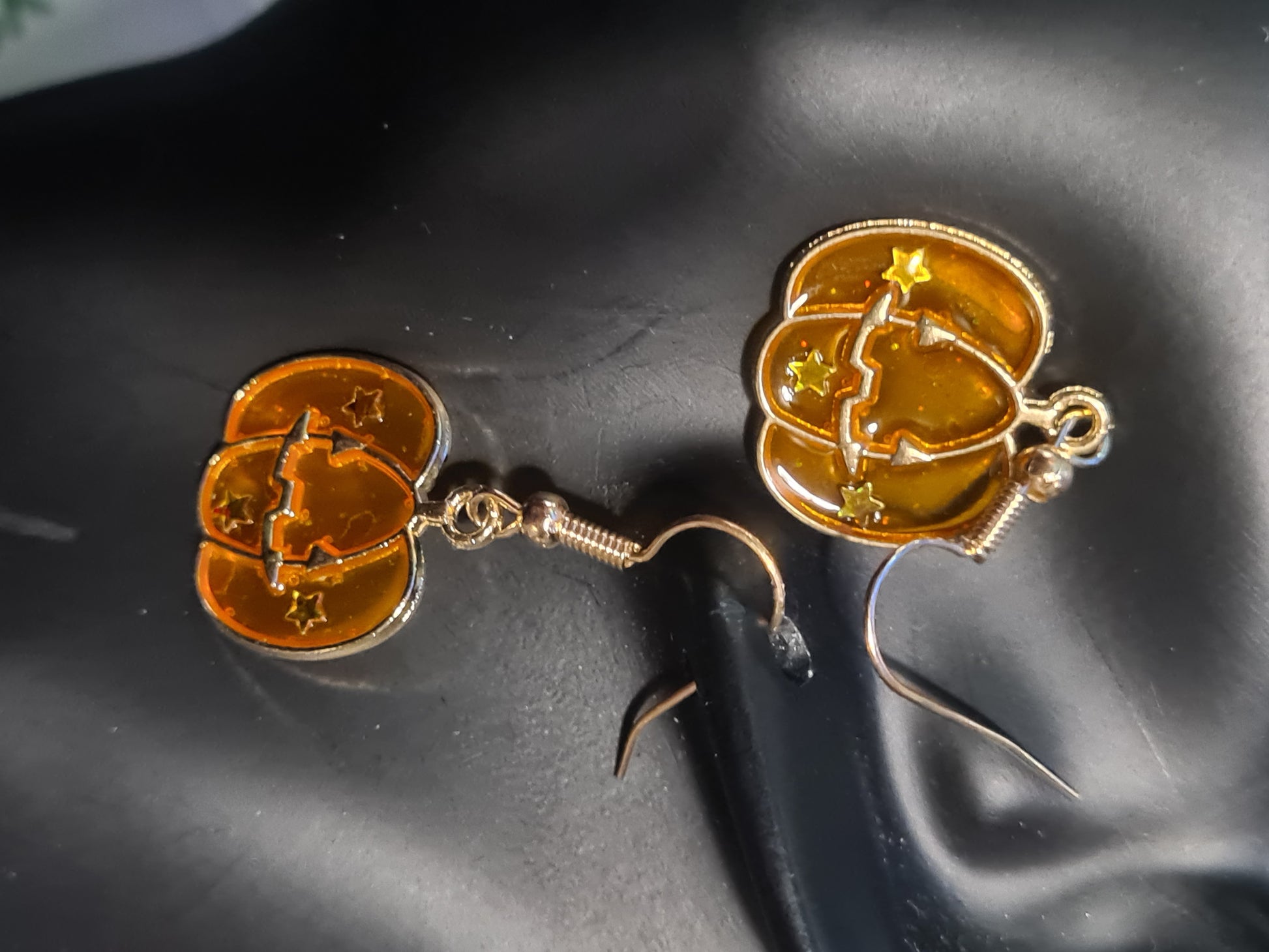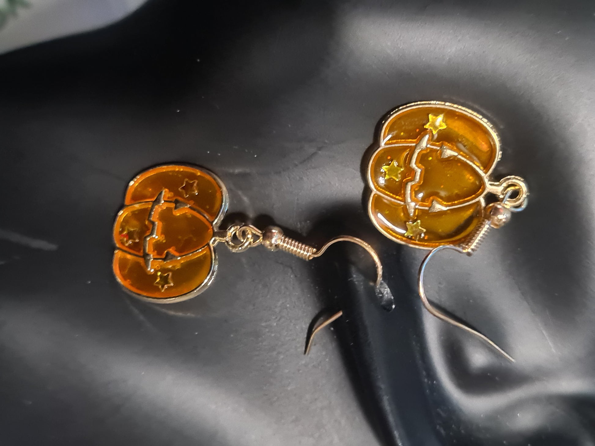 Add a touch of whimsy to your outfit with our beautifully crafted pumpkin earrings. Made with intricate detailing, these earrings are the perfect accessory for fall. The unique design will surely catch everyone's attention, making you stand out in style. A must-have for any pumpkin lover.