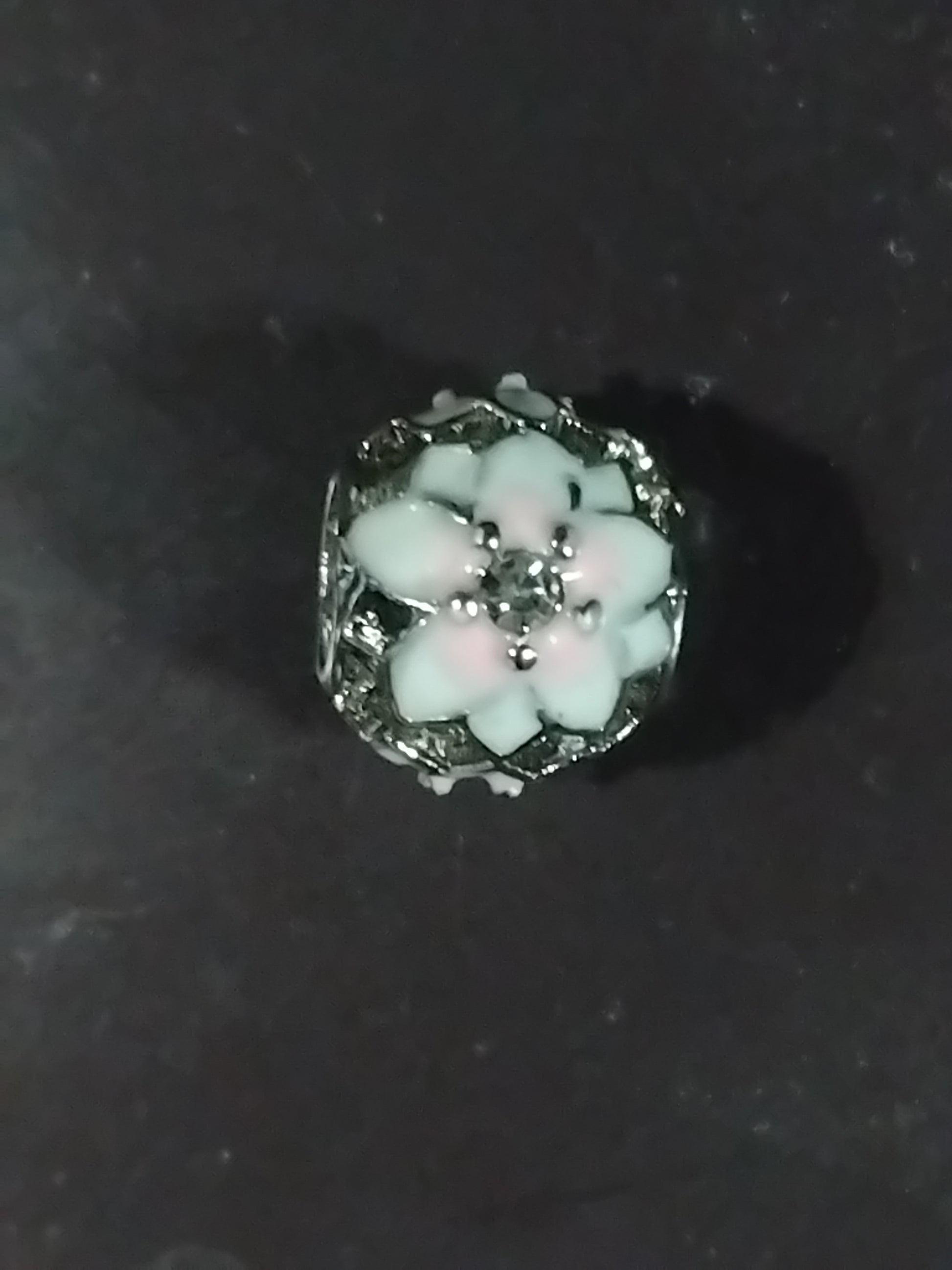 Silver flower painted design charm