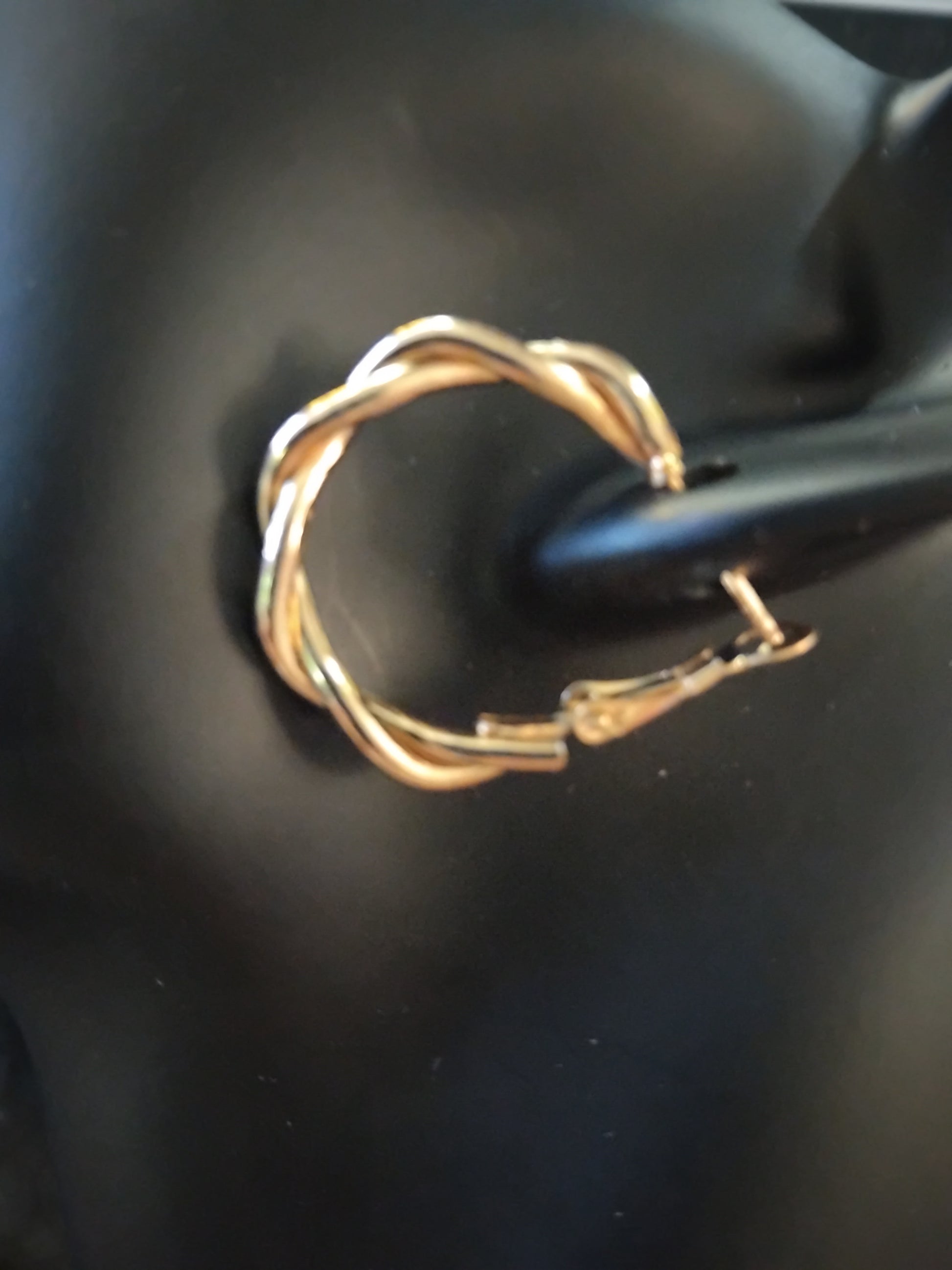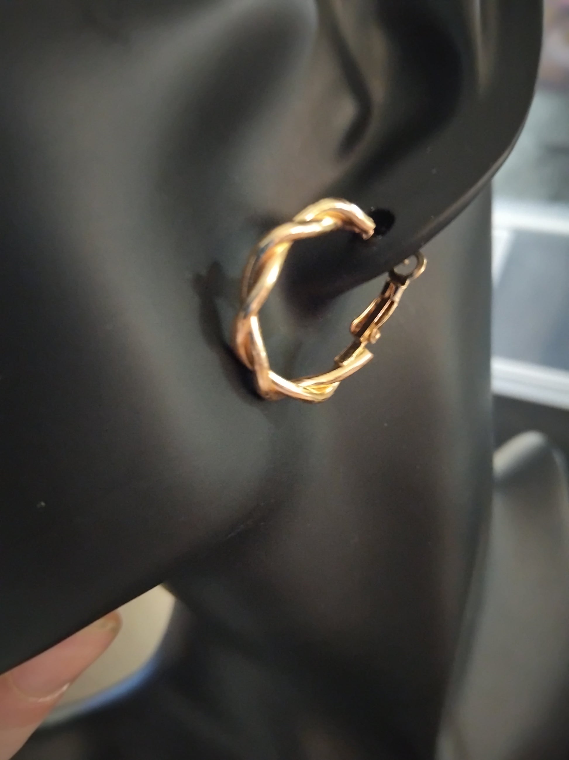 These small twist detail retro style gold plated hoops provide a vintage look with a modern twist. The clipped back design adds convenience and comfort, while the gold plating adds a touch of luxury. Elevate any outfit with these timeless earrings.